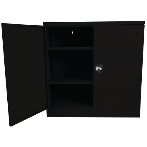 - Nízka kovová skriňa vhodná na ukladanie šanónov a dokumentov.