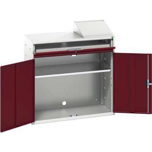 - Pracovná počítačová skriňa vhodná na bezpečné uloženie i použitie počítačovej techniky na pracovisku. 75 kg a priechod pre káble a šikmý písací pult.