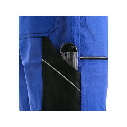 Panské montérkové nohavice - skrátená verzia pre výšku 170-176 cm. Opasok s pútkami na opasok, elastický zadný diel, predné vrecká, bočné vrecko na rolovací/skladací meter, bočné vrecko na mobilný telefón/peňaženku, zdvojené kolená, zadné vrecko s príklopkou, reflexné doplnky. Veľkosť: 44-64 Materiál podšívky: 100% bavlna Reflexné doplnky: Áno Dĺžka výrobku: Krátka veľkosť 170-176 cm Farba: modrá