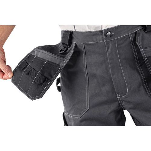 Panské montérkové nohavice, pás s pútkami na opasok, elastický zadný diel, predné voľne visiace vrecká na náradie s vkladacími vreckami, multifunkčné vrecká na oboch stranách, kolená vystužené polyesterom 600D s vkladacími kolennými výstuhami, dve zadné vrecká, jedno so suchým zipsom, reflexné doplnky. Odporúčané použitie: stavebníctvo, strojárstvo, ľahký priemysel, automobilový priemysel, logistika, skladová manipulácia, špedícia, autoservis, údržba, montáž, poľnohospodárstvo, záhrada, hobby. Veľkosť: 46-64