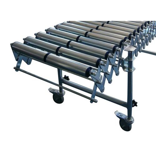 Nožnicový dopravník s oceľovými valčekmi, šírka 500 mm, 32 osí