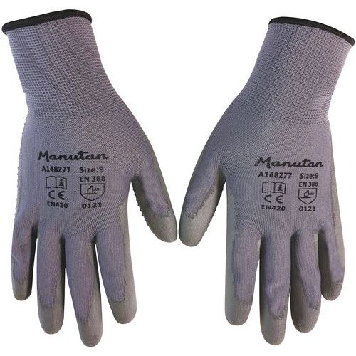 Nylonové rukavice Manutan Expert s terčíkmi polomáčané v polyuretáne, sivé, veľ. 9