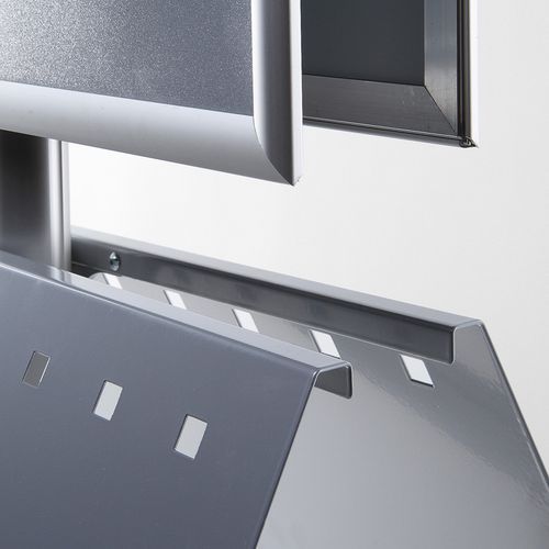 V spodnej časti sa nachádza priestor na umiestnenie plechového obalu na brožúry, katalógy a iné prospekty.