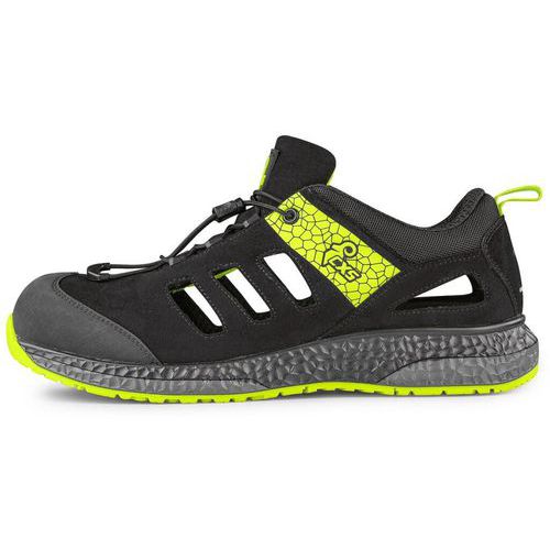 Odolná, komfortná a navrhnutá pre náročné podmienky. Táto perforovaná poltopánka s ESD ochranou, reflexnými prvkami a rýchloupínacím systémom vyniká zvrškom z brúseného mikrovlákna. Podšívka z priedušného mesh materiálu a stielka HI-POLY poskytuje maximálne pohodlie po celý deň. Zosilnenie päty mikrovláknom a gumová ochrana špice zvyšujú životnosť a odolnosť najviac namáhaných častí obuvi. Zvršok je rýchloschnúci a ľahko sa udržuje. Bezpečnostnými prvkami sú kompozitné špice a textilná planžeta. Podošva z kombinácie PU a gumy ponúka výbornú stabilitu a bezpečnosť - je protišmyková, antistatická, odolná voči olejom a kontaktnému teplu až do 300 °C. Ochrana: S vystuženou špičkou a podrážkou Reflexné doplnky: Áno Veľkosť: 37-48