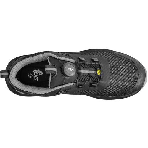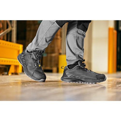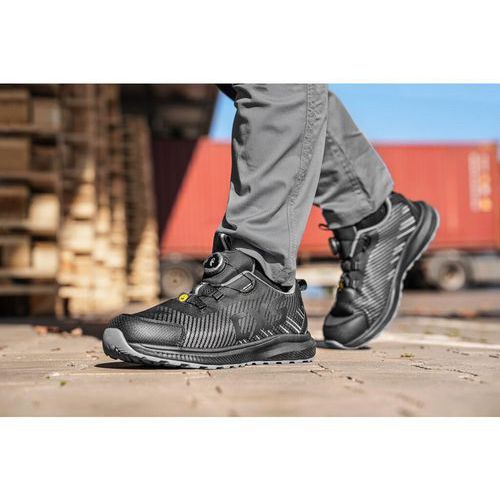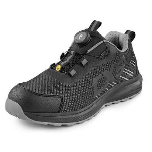 Bezpečnostná ESD poltopánka s priedušným zvrškom, kompozitnou špicou a textilnou antipenetračnou stielkou, reflexné doplnky. Špeciálny uťahovací systém umožňuje rýchle stiahnutie aj uvoľnenie obuvi. Materiál: perforovaný textilný zvršok z polyesteru, vonkajšia ochrana okopu zo štruktúrovaného TPU, textilná podšívka, pohodlná anatomická vložka, podošva: EVA/guma, protišmyková, olejovzdorná, antistatická, odolná proti prepichu a kontaktnému teplu do 300 °C. Vhodné na prácu v interiéri a suchých prevádzkach. Stupeň ochrany: S1PS Ochrana: S vystuženou špičkou a podrážkou Reflexné doplnky: Áno Veľkosť: 37-48 ESD : áno
