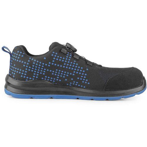 Bezpečnostná poltopánka s kompozitnou špicou a planžetou Dyna-Flex®, reflexné doplnky. Špeciálny uťahovací systém umožňuje rýchle stiahnutie aj uvoľnenie obuvi. Materiál: zvršok z odolného 1,8 - 2,0 mm polyesteru, predná časť zosilnená mikrovláknom, vnútorné zosilnenie päty mikrovláknom, priedušná a oderu odolná textilná podšívka, podošva: PU-PU, protišmyková, olejovzdorná, antistatická, odolná proti prepichu. Stupeň ochrany: S1PS Ochrana: S vystuženou špičkou a podrážkou Reflexné doplnky: Áno Veľkosť: 35-48