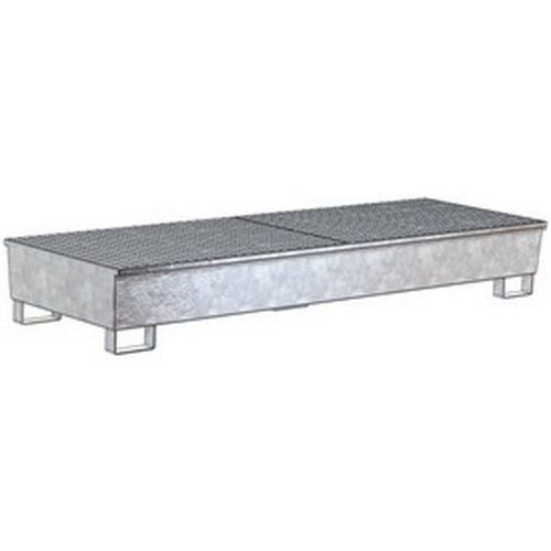 Oceľová záchytná vaňa Manutan Expert, na 4 sudy, dlhé vyhotovenie, kapacita 440 l, pozink