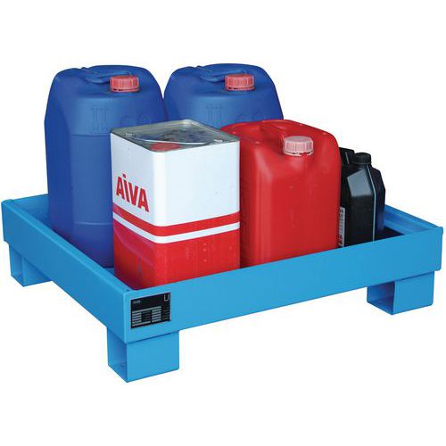 - Kovové retenčné vane bez roštu na skladovanie prevádzkových a horľavých kvapalín.