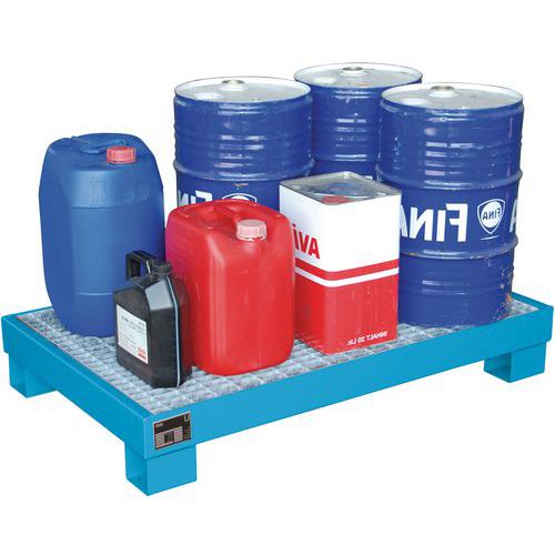 - Oceľové záchytné vane s roštom na skladovanie prevádzkových a horľavých kvapalín.