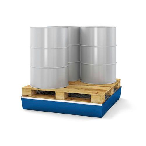 Kovová záchytná vaňa s roštom, na paletu, na 4 sudy, lakovaná