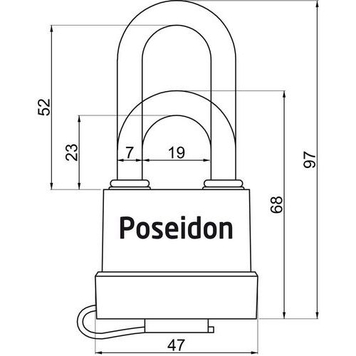 | Názov produktu | Oceľový visací vodoodolný zámok s plastovým krytom s predĺženým strmeňom, priemer strmeňa 7 mm, výška 23 mm, |