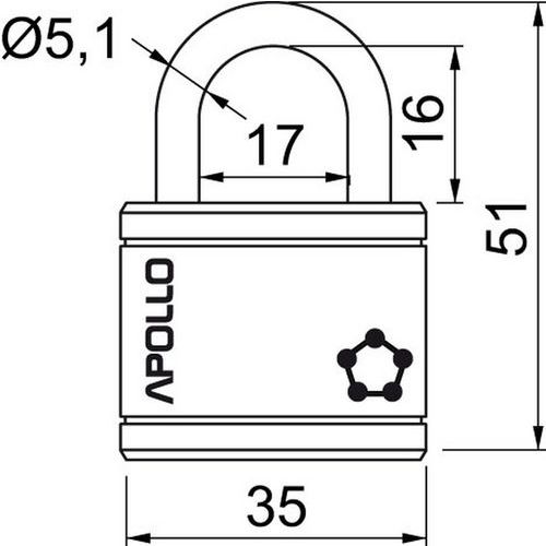 Oceľový visací zámok Apollo, priemer strmeňa 5,1 mm, výška 16 mm