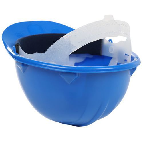 Pracovná helma so šesťbodovým plastovým prichytením a plastovými doplnkami.
