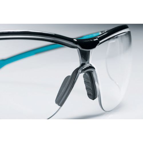 - Vysoko flexibilný a nastaviteľný mostík a pružné protišmykové koncovky spánkov umožňujú bezpečné nosenie bez otlakov.