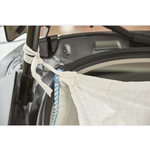 - Vrece je vybavené štyrmi malými úchytkami pre ľahké zavesenie v aute a dvoma veľkými rukoväťami vpredu a vzadu pre ľahkú manipuláciu.