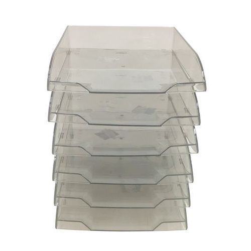 Vysoko stabilné zásobníky na dokumenty formátu A4. Možno ich skladať vertikálne alebo stupňovito. 2 integrované držiaky štítkov na prednej strane. Pojmú dokumenty formátu A4, 24 x 32 cm a elastické zložky. Protišmykové podložky.
