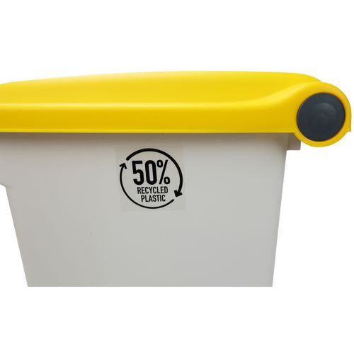Odpadkový nášľapný kôš Manutan Expert, 70 l, biela/žltá