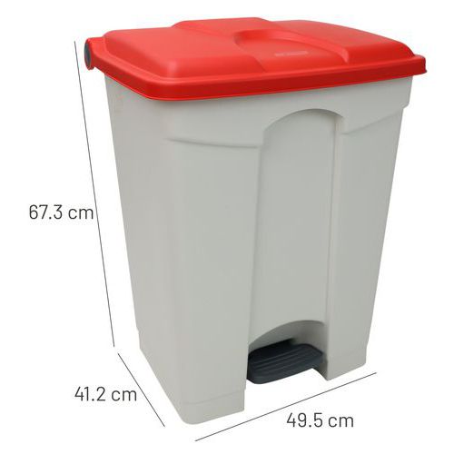 Odpadkový nášľapný kôš Manutan Expert, 70 l, biela/červená