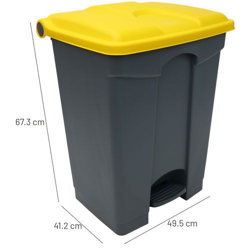 Odpadkový nášľapný kôš Manutan Expert, 70 l, šedá/žltá
