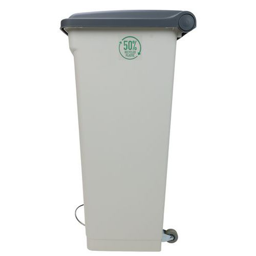 Odpadkový nášľapný kôš Manutan Expert, 90 l, šedá/biela