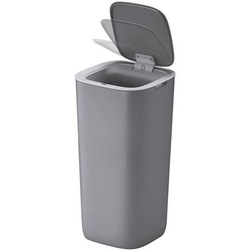 - Trendy štvorcový odpadkový kôš zo syntetického materiálu, vybavený senzorom a spínacím tlačidlom na otvorenie veka jednoduchým gestom.