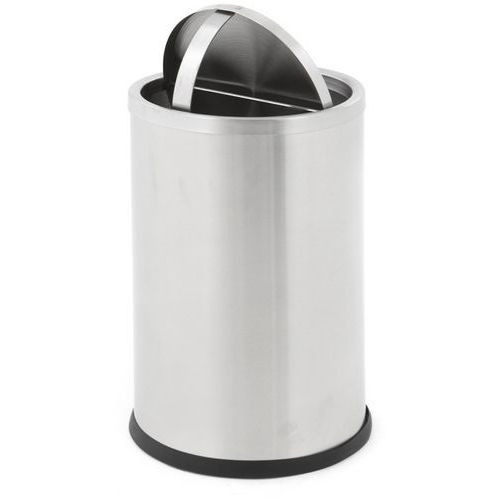 - Okrúhly kôš na odpadky s výklopným vekom z nehrdzavejúcej ocele.