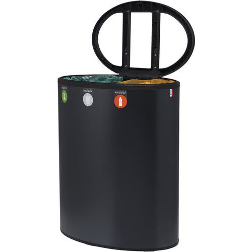 Odpadkový kôš na separovaný odpad Lune Binc 3flux s otvoreným vekom čierny