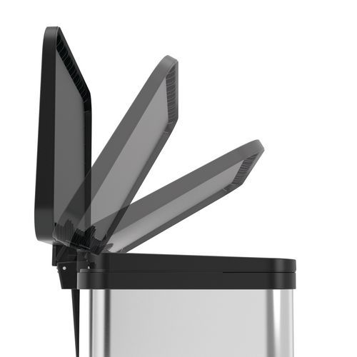 - Pedálový odpadkový kôš, obdĺžnikový, s čiernym plastovým vekom, s tichým uzatváraním.