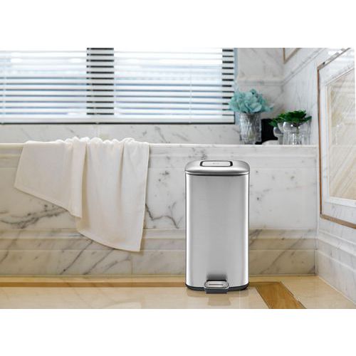 - Odpadkový kôš má plastovú vložku, rukoväť na zadnej strane a veko s tichým zatváraním a jedinečným dizajnom.