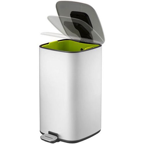 - Odpadkový kôš má plastovú vložku, rukoväť na zadnej strane a veko s tichým zatváraním a jedinečným dizajnom.