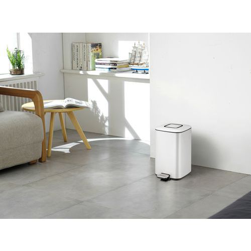 - Štvorcový nášľapný kôš na kozmetiku z brúsenej nehrdzavejúcej ocele s povrchovou úpravou proti odtlačkom prstov.
