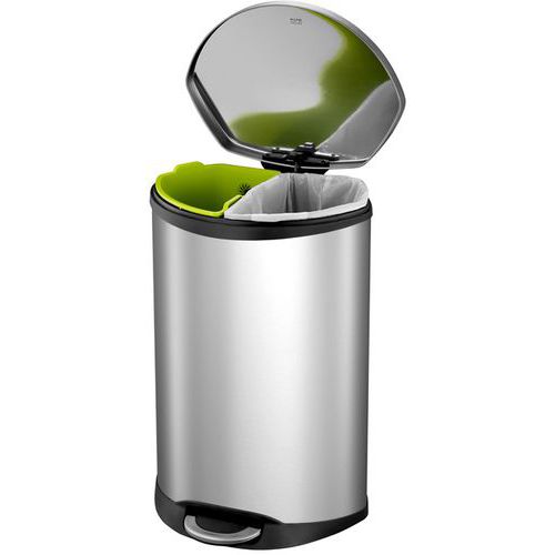 Jedinečný pedálový odpadkový kôš vďaka svojmu škrupinovému tvaru. Má 2 koše s plastovou vložkou (2x 22 l) na selektívne triedenie. Vybavený mäkkým zatváracím vekom a povrchovou úpravou proti odtlačkom prstov.