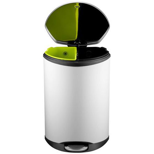 Jedinečný pedálový odpadkový kôš vďaka svojmu škrupinovému tvaru. Má 2 koše s plastovou vložkou (2x 22 l) na selektívne triedenie. Vybavený mäkkým zatváracím vekom a povrchovou úpravou proti odtlačkom prstov.