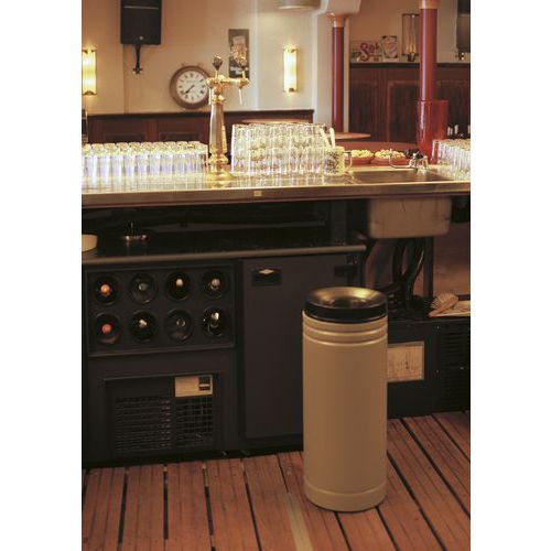 - Okrúhly odpadkový kôš s dvojstenným čiernym vekom.