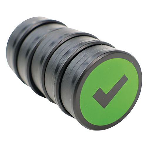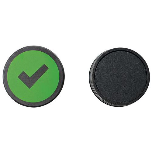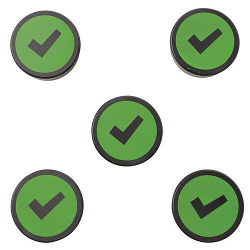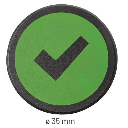 - Okrúhly magnet so symbolom háčika alebo fajky, znázorňujúci napr. správne riešenie alebo splnenú úlohu. Výrazné farby zaisťujú vysokú viditeľnosť.