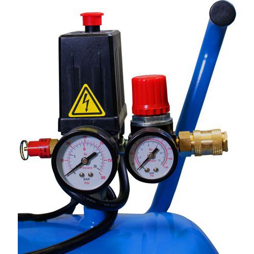 - Manometre merajú tlak vo vzdušníku a pracovný tlak.
