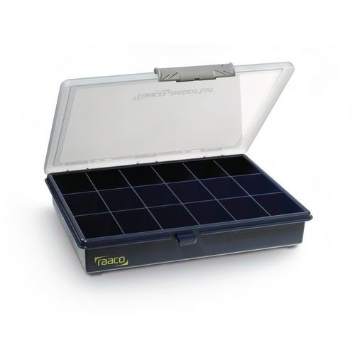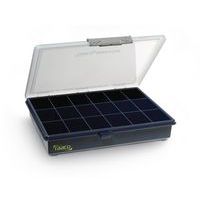 - Uzatvárateľný plastový organizér na drobné náradie a materiál. Transparentné veko pre rýchly prehľad o obsahu. Pevné priehradky.