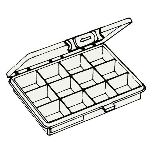 - Uzatvárateľný plastový organizér na drobné náradie a materiál. Transparentné veko pre rýchly prehľad o obsahu. Pevné priehradky.