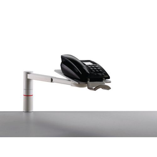 - Sivý stojan na upevnenie k stolovej doske. S otočným výsuvným ramenom z hliníka a odkladacou doskou naklonenou smerom k používateľovi. Využiteľný ako držiak na telefón a v kombinácii s rozširujúcimi prvkami aj na fax alebo notebook.