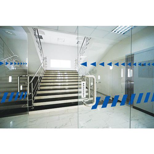 Ceduľa na sklenené dvere 52 mm x 1 m, modrá šípka