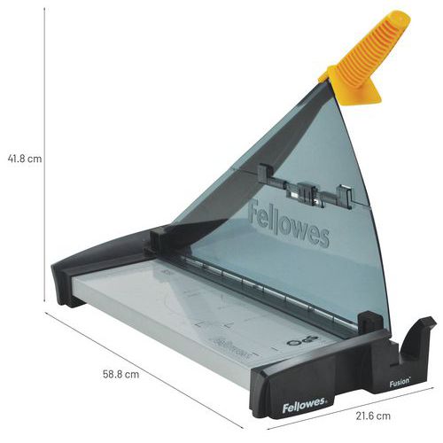 - Pákové rezačky Fellowes sa ľahko používajú vďaka veľmi pevnej oceľovej čepeli a praktickej rukoväti.