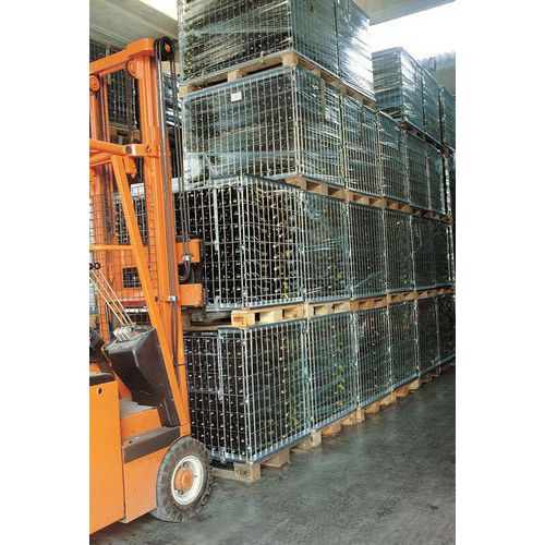 Paletové pletivové (oko 65 x 120 mm) nadstavce s čiastočne sklopnou stenou sú ideálne na použitie najmä v skladoch. Jednoduchá manipulácia napr. pomocou paletového vozíka či dopravníka. Nadstavce je možné stohovať a ľahko zložiť a uskladniť. Kvalitná pozinkovaná konštrukcia.