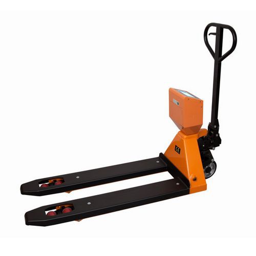 Paletový vozík s váhou, do 2000 kg, pogumované riadiace kolesá, s EÚ overením a kalibračným listom