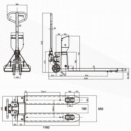| Názov produktu | Paletový vozík s váhou, do 2000 kg, pogumované riadiace kolesá, s EÚ overením a kalibračným listom |