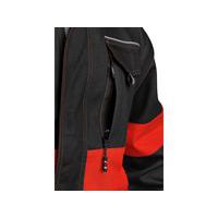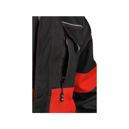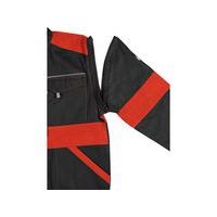 Čierna pánska montérková blúza s oranžovými doplnkami. Náprsné a predné vrecká schovajú telefón, meter a ďalšie drobné predmety potrebné na prácu. Praktické nosenie zaisťuje sťahovacia guma v páse a rukávy zakončené pružnou manžetou. Odopnutím rukávov je možné blúzu počas chvíľky premeniť na vestu. Kryté zapínanie na zips a zapínanie pri krku. EN ISO 13688: Táto medzinárodná norma určuje všeobecné požiadavky na vyhotovenie ochranných odevov z hľadiska ergonómie, neškodnosti, označenia veľkostí, starnutia, kompatibility a označovania ochranných odevov a na informácie, ktoré sú dodávané výrobcom s ochrannými odevmi.