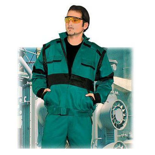 Zelená pánska montérková blúza s čiernymi doplnkami.