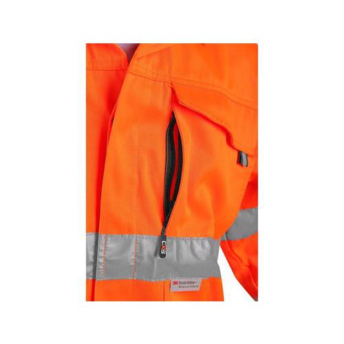 Oranžová výstražná montérková blúza s vysokou viditeľnosťou vo dne i v noci. Náprsné vrecká s menším vreckom na telefón a predné vrecká schovajú drobné predmety potrebné na prácu. Kryté zapínanie na zips a rukávy do manžety. Kvalitné reflexné pruhy 3M v páse a na rukávoch.