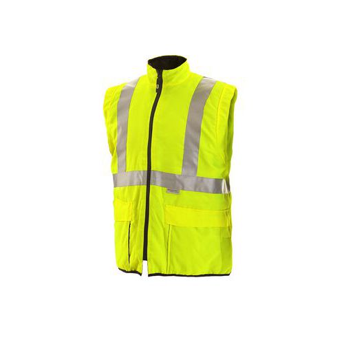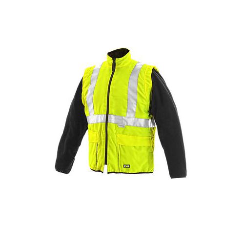 Vysoká viditeľnosť, odnímateľná vnútorná bunda, 5 v 1, odolná voči vode a vetru, golier s kapucňou, 3M reflexné pruhy, vnútorné vrecko na mobil, podlepené švy. Veľkosť: S-XXXL Kategória: Pánska Predpisy: EN 471+A1, EN 343+A1 Zloženie materiálu: priedušný 100% polyester Oxford, podšívka 100% polyester, vnútorná bunda má odnímateľné rukávy, vnútorný materiál: 100% polyester Oxford, rukávy 100% polyester - fleece, výplň 100% polyester Farba: žlto-modrá