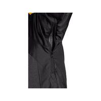 Čierna pánska zateplená bunda s odopínacou kapucňou s oranžovými doplnkami.