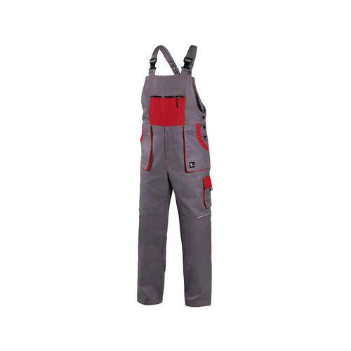 Pánske montérkové nohavice CXS s náprsenkou, sivé/červené